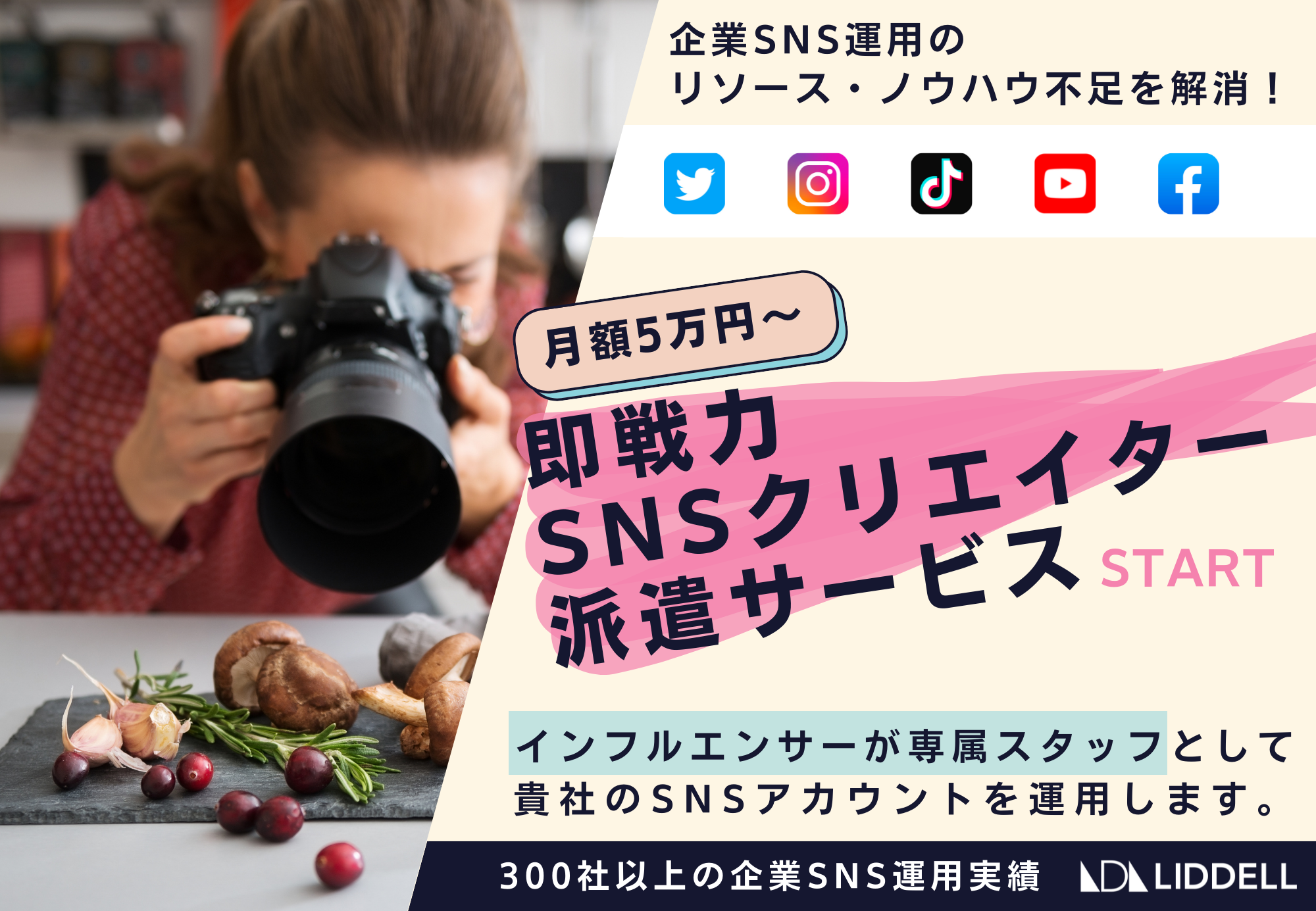 【月額5万円〜】企業SNS運用のリソース/ノウハウ不足を解消!300社以上の企業SNS運用実績を誇るリデルが『即戦力SNSクリエイター派遣サービス』を開始