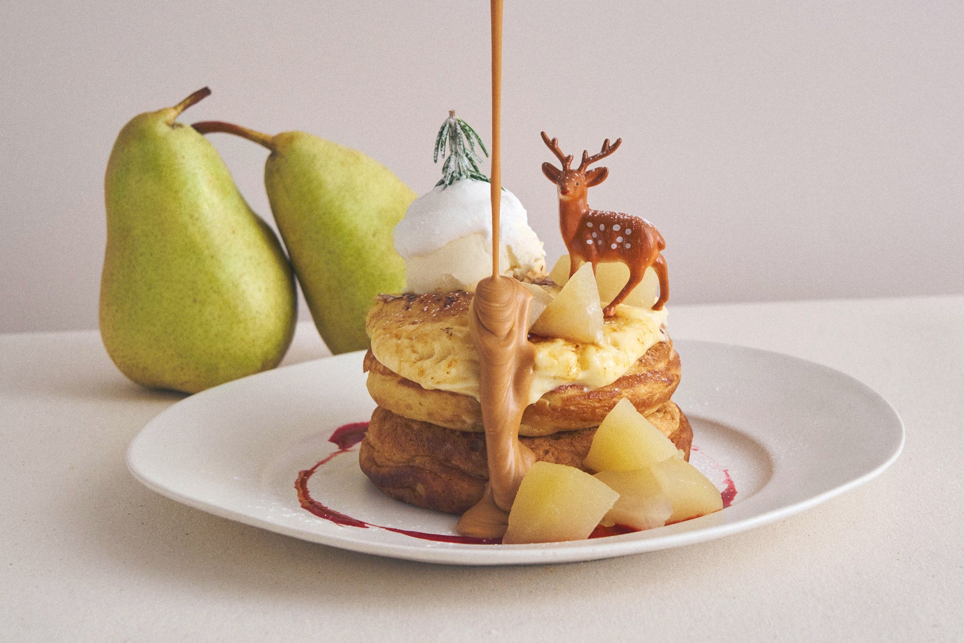 洋なし×ブリュレ。香りと甘さで彩る、11月限定“冬のクリスマスパンケーキ”