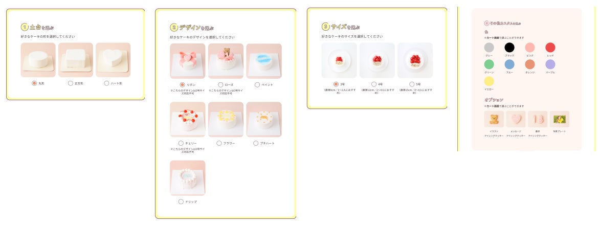 このようなお客様からのニーズにお応えできるよう、ケーキの形や色、デザインなどをお客様ご自身で自由に組み合わせができる本サービスの提供を開始することといたしました。本サービス提供を通して、ハレの日をさらに華やかに彩るお手伝いをしてまいります。