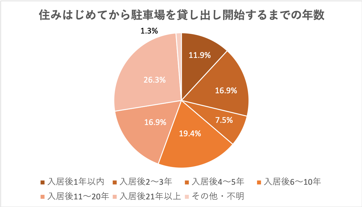 ・自宅の駐車場貸し出しは「入居後21年以上経過してから(26.3%)」が最多という結果に