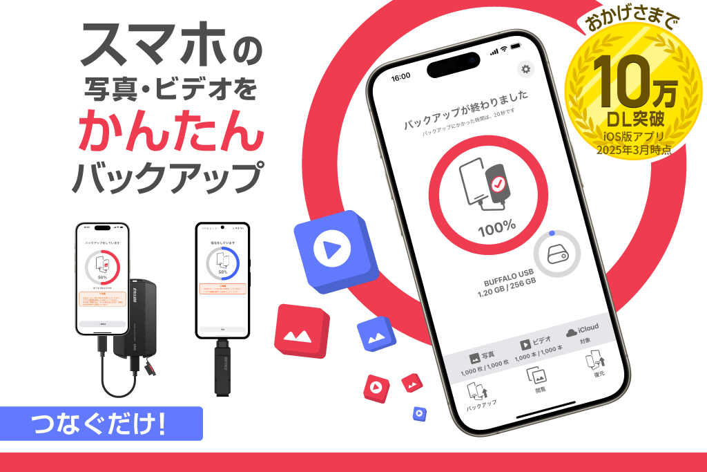 株式会社バッファロー(本社:東京都千代田区、代表取締役 社長執行役員CEO:牧 寛之)は、スマートフォンに保存している写真・ビデオを外部USBストレージにバックアップ(データのコピー)できる無料のアプリケーション「写真バックアップ」(Android版)の提供をGoogle Play ストアにて開始いたしました。