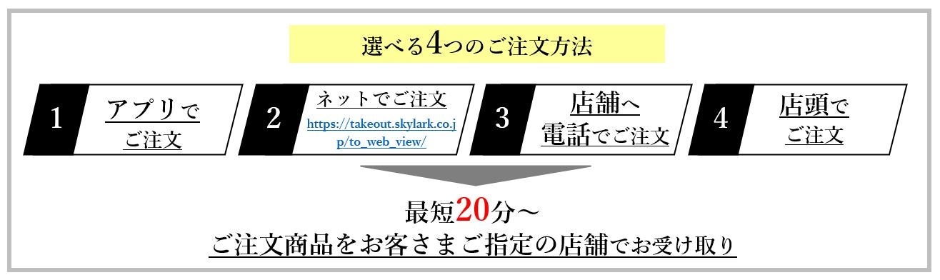 ※テイクアウトは全店で実施しております。店舗により販売時間が異なります。詳細はHPよりご確認ください