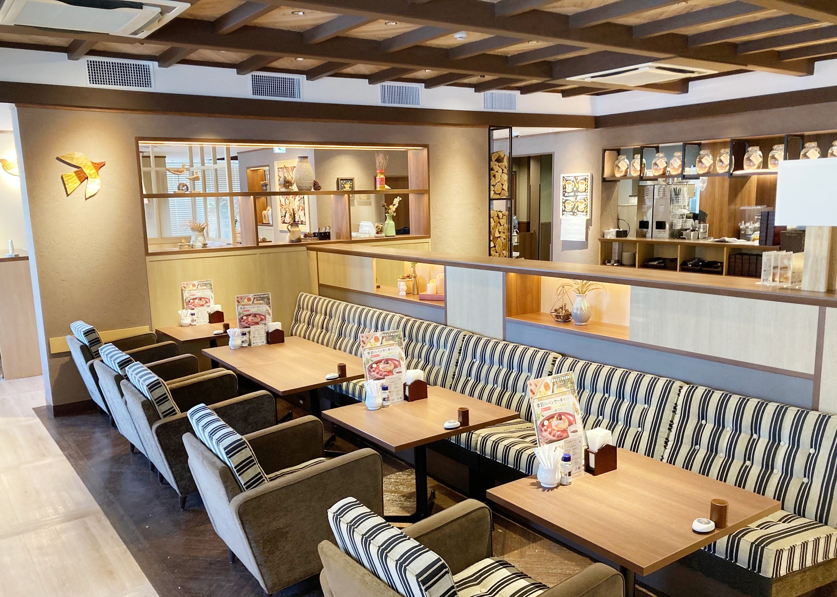 | 「高原リゾートの珈琲店」をイメージした、癒しのカフェ空間づくり 店内は木の香りただようゆとりの癒し空間で、居心地のよい店内づくりにもこだわっています。 人気NO.1のふわっとろパンケーキや、フード・ドリンクメニューの充実 朝限定お得なモーニングサービスから、パスタやロコモコなどのカフェGOHAN、軽食・デザートまで多彩なメニューや、深いコクとすっきりとした後味が特徴の「珈琲」などをご用意しております。 豊富な雑誌や絵本もご用意。お客さまニーズに対応した寛ぎ時間をご提供 朝の爽やかなひと時からランチタイムの女子会・ママ会、穏やかな午後のカフェタイム、ディナータイムのお食事など、お一人様からファミリーまで様々なシーンでご利用いただけます。 |