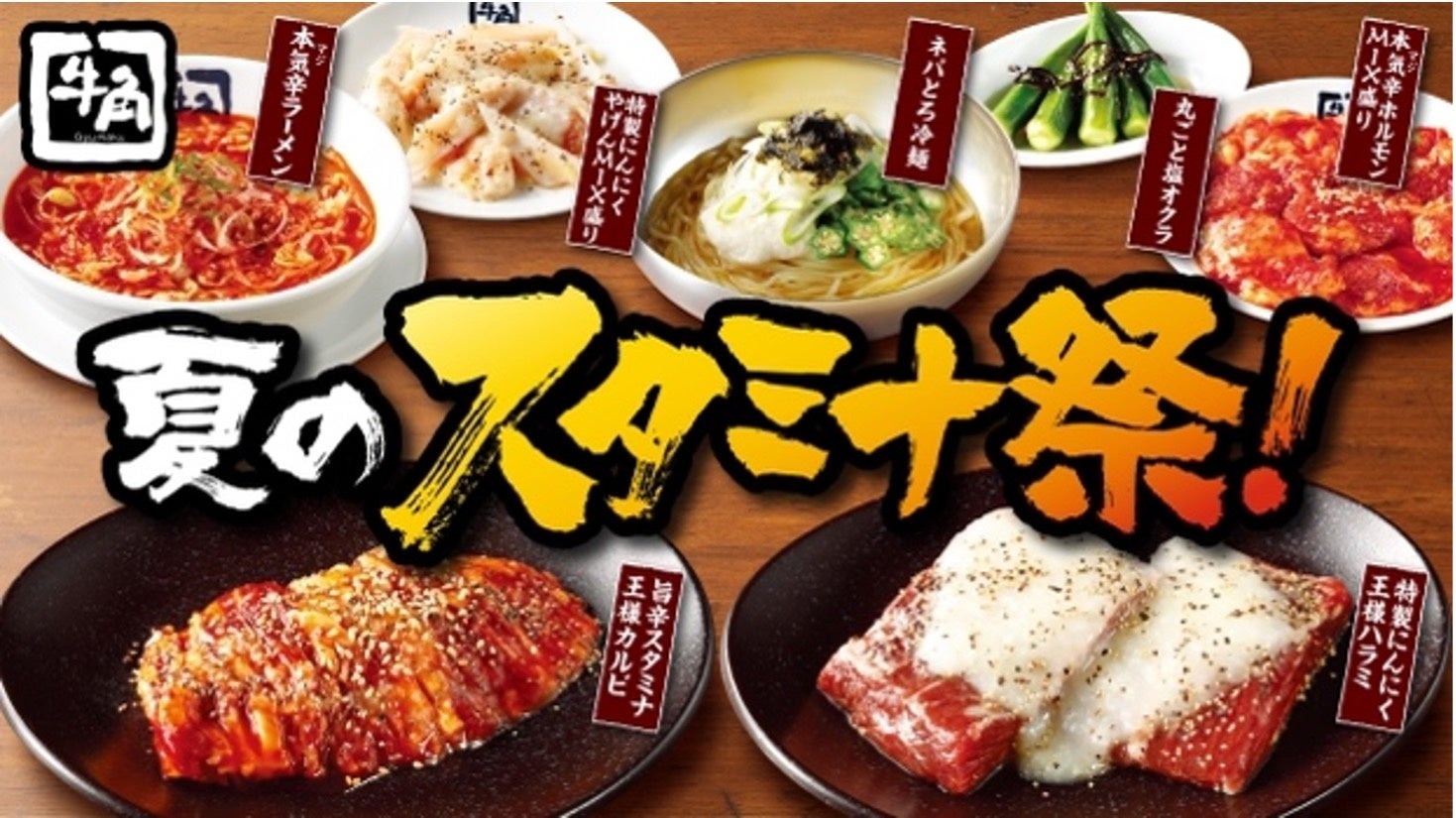 牛角では、スタミナをつけて暑さに負けないよう応援する「夏だ!焼肉だ!スタミナ祭り!」を開催中。