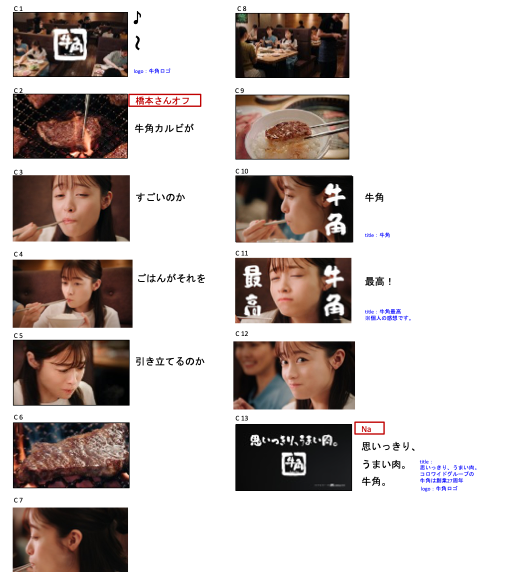 楽しかったですね。絵コンテが食べて食べて食べる。という感じの絵だったんですけど、実際繋がったもの見たら相当お腹が空くCMになっているかと思っていて、焼いている時から、実際の店舗で撮影しているので、香りだったりとか本当に牛角の店舗に来ているな。というちょっとプライベートに近いような感じの楽しい撮影でした。