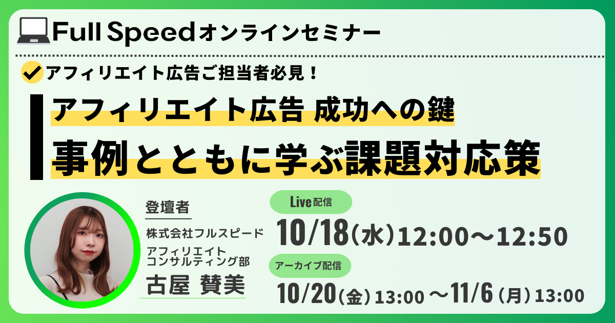【10/18(水) オンラインセミナー】アフィリエイト広告成功への鍵:事例とともに学ぶ課題対応策