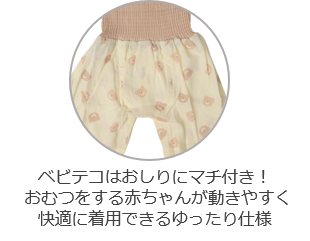 おむつをする赤ちゃんが動きやすく快適に着用できるゆったり仕様