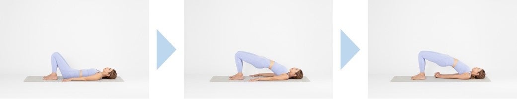 - お尻の下で手を組んで、胸をさらに開いてポーズの完了。戻すときは行った道を帰るようにゆっくりと。