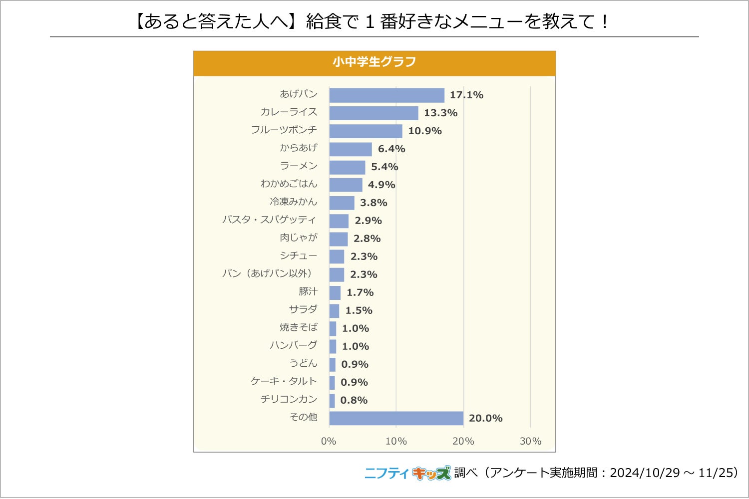 ~「ニフティキッズ」にて「給食」についての調査を実施~