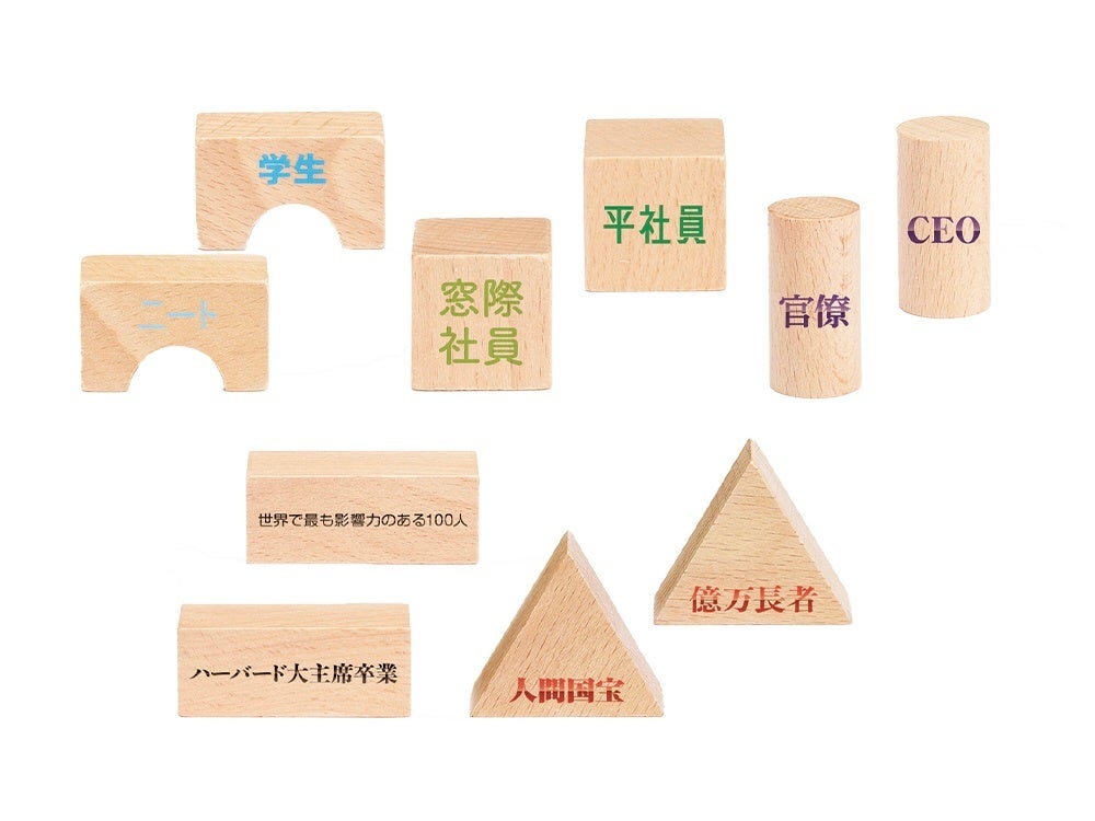 ラインアップは「学生」「官僚」「CEO」など全10種類で、積み木の組み合わせ次第で、思いのままに理想のキャリアを積み上げることが可能です。