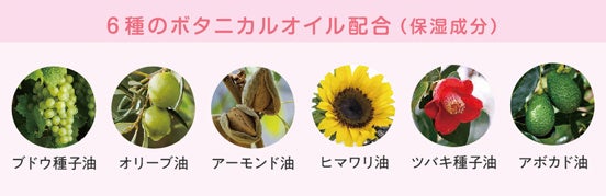 保湿成分:ブドウ種子油、ホホバ種子油、アーモンド油、ハチミツエキス