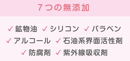鉱物油、シリコン、パラベン、アルコール、石油系界面活性剤、防腐剤、紫外線吸収剤不使用