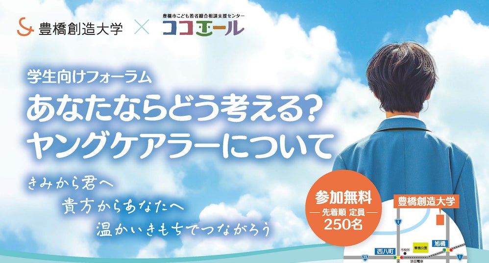 愛知県豊橋市こども若者総合相談支援センター「ココエール」は10月28日(土)午後1時から、ヤングケアラー学生向けフォーラム「あなたならどう考える?―ヤングケアラーについて」を同市牛川町の豊橋創造大学で開催します。