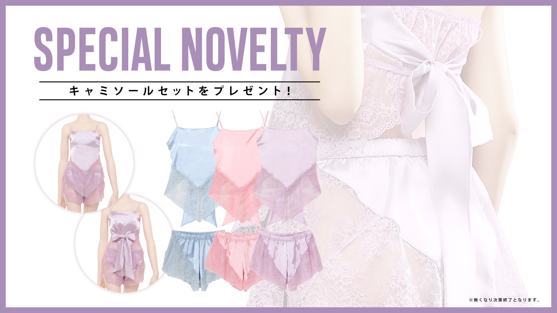 公式オンラインストア/全国店舗にてノベルティキャンペーン開催中!新作商品を含む18,000円(税込)以上ご購入の方に[キャミソールセット]をプレゼント!詳細は特設ページよりご覧いただけます。