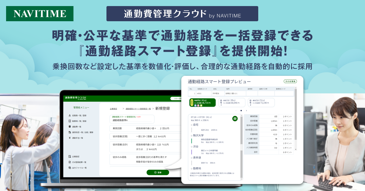従業員の通勤費一括管理システム『通勤費管理クラウド by NAVITIME』、「通勤経路スマート登録」機能を提供開始