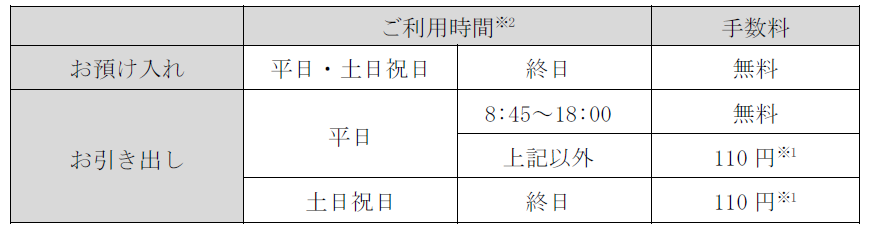(2)ご利用手数料(北陸銀行キャッシュカードの場合)