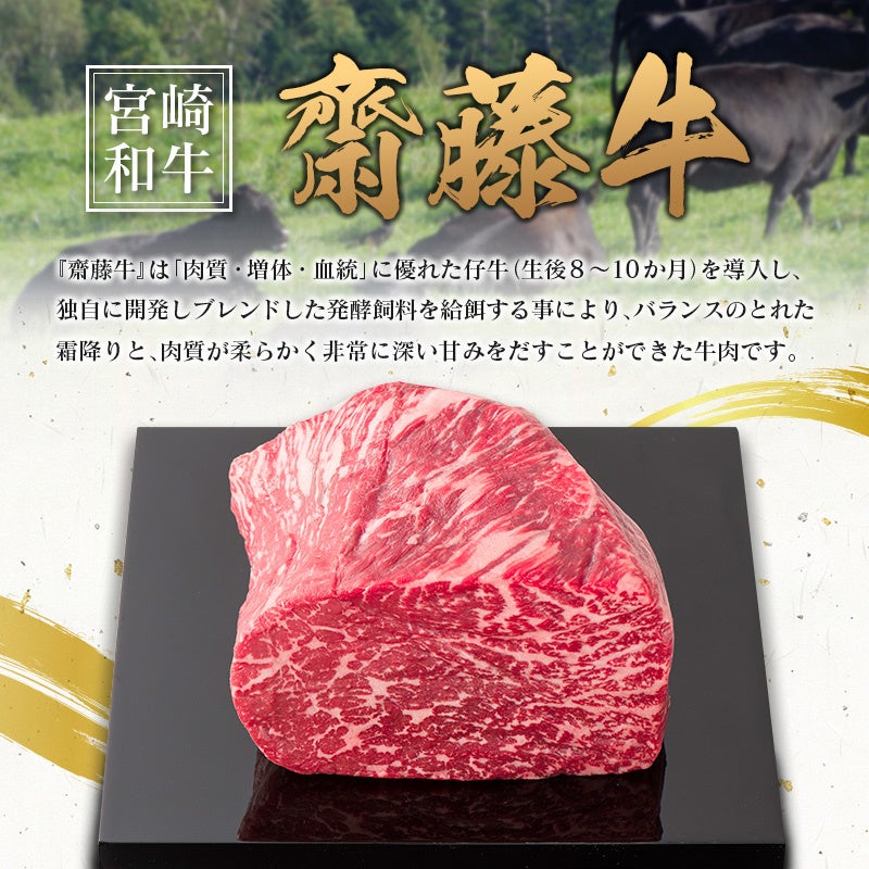≪齋藤牛とは?≫ 新富町および西都市の牧場でのびのび育てられた株式会社サイトーファームのオリジナルブランドです。独自に開発しブレンドした発酵飼料を給餌する事により、バランスのとれた霜降りと、肉質が柔らかく非常に深い甘みをだすことに成功した牛肉です。