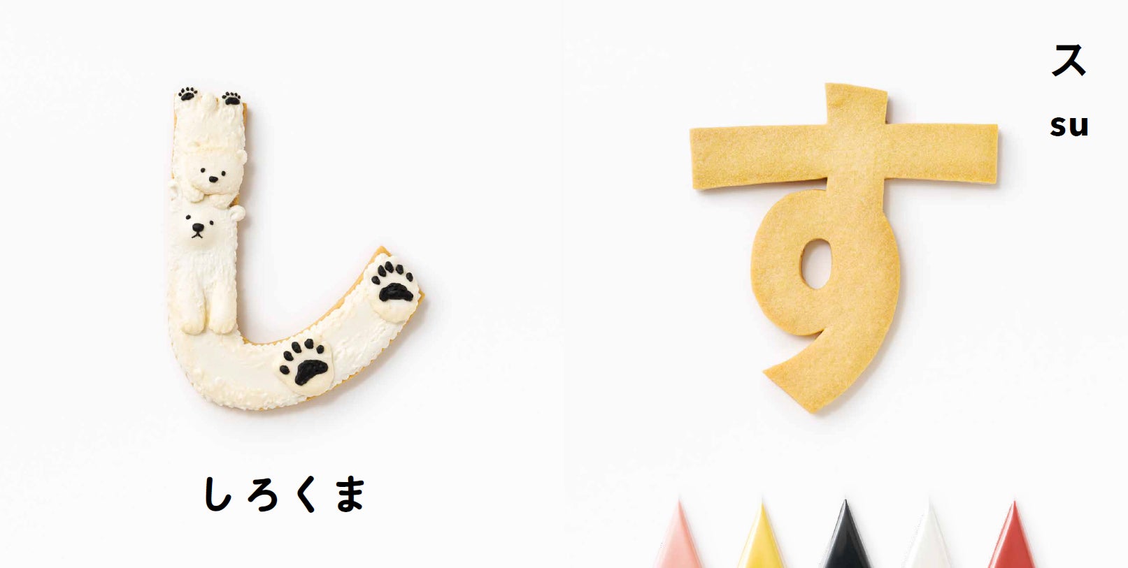 ひらがな46文字をアイシングクッキーで表現したあいうえお絵本。予約開始時に投稿された「あ」の制作動画のインプレッション数は200万超の大反響。一部書店では本書収録の実物クッキーを展示予定。