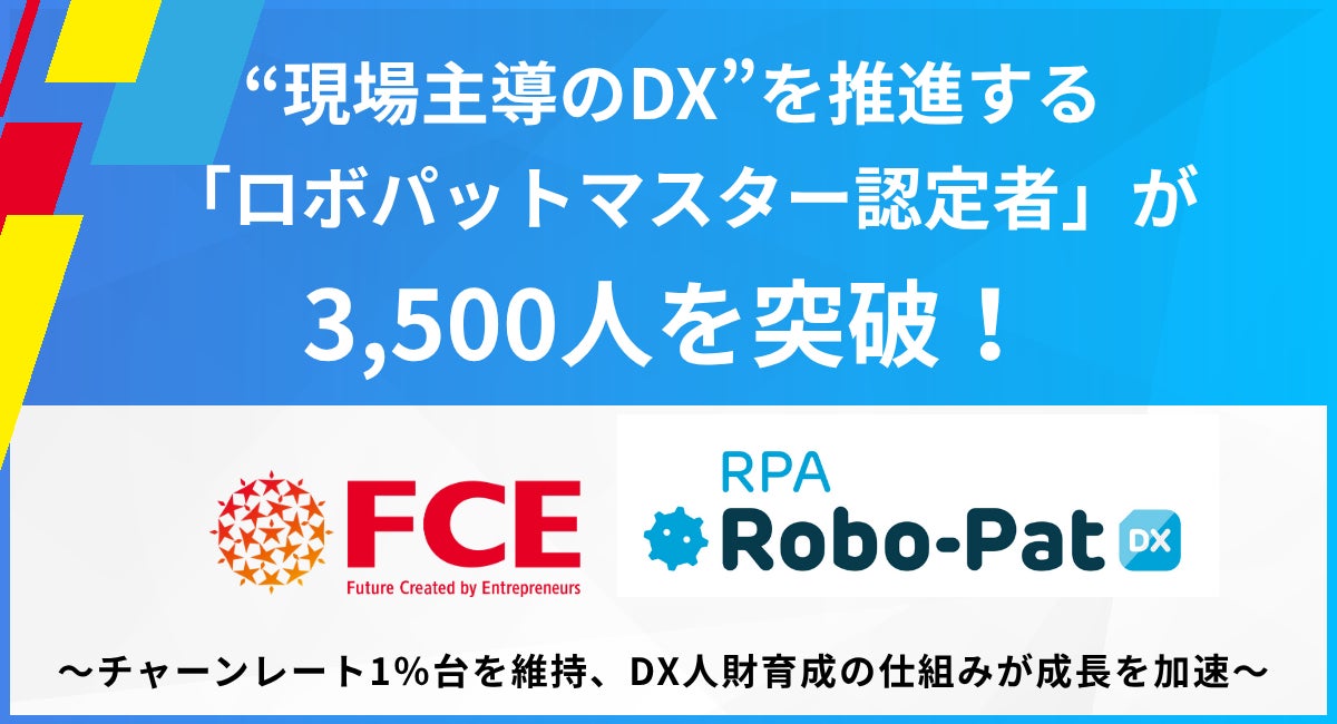 株式会社FCE (本社:東京都新宿区、代表取締役社長:石川淳悦、証券コード:9564)が提供する純国産RPAツール「RPAロボパットDX」は、RPAを活用して社内の業務改善やDX推進を担う人財を育成する「ロボパットマスター認定プログラム」の認定者が、3,500人を突破したことをお知らせいたします。 「ロボパットマスター認定プログラム」は、RPAツール導入後の“活用定着”を支援するFCE独自の講座であり、社員が自ら業務改善をリードできる仕組みとして、全国の企業で高い評価をいただいています。チャーンレート(解約率)1%台を下支えする中心的な施策としても機能しており、1,800社(2025年9月末)への拡大の推進力となっております。