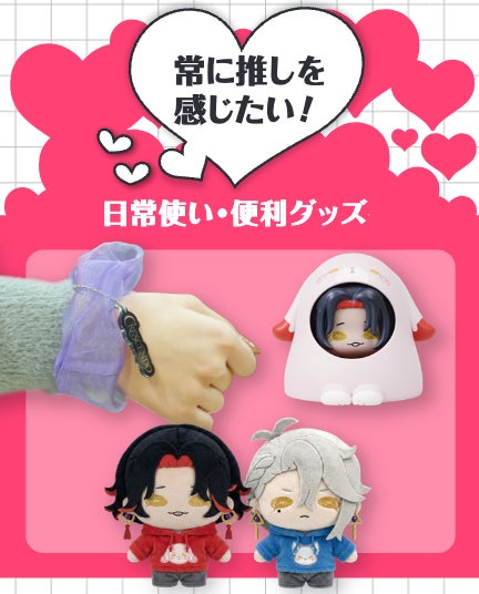 今回当社は、オリジナル推し活グッズを約85種展示します。中でも注目は、ファンの行動心理に基づいた6つのカテゴリ別展示。「ファンが推し活をする上で、どのような心理が働いているのか」といった観点から逆算し、行動心理ごとにファンに刺さるグッズを多数展示予定です。以下、カテゴリの詳細をご紹介します。