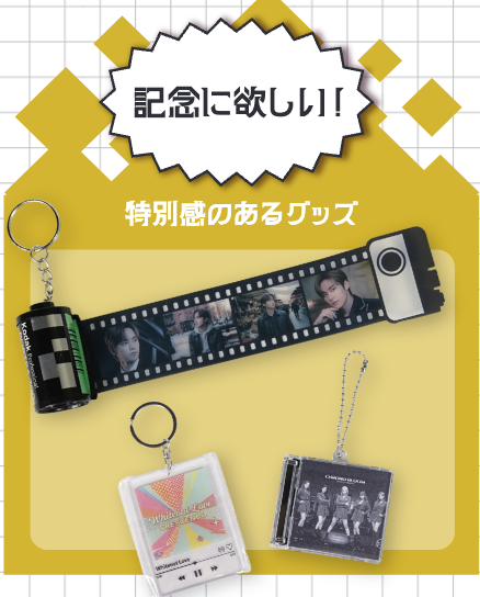 「アーティストのグッズは欲しいけど、他の人と被りたくない」「他にはないおしゃれなグッズが欲しい」そんなファンの想いに応える、カスタムグッズを展示。参戦用バッグに付けられるワッペンやビーズストラップなど、よりライブやイベントを楽しめるグッズが見つかります。