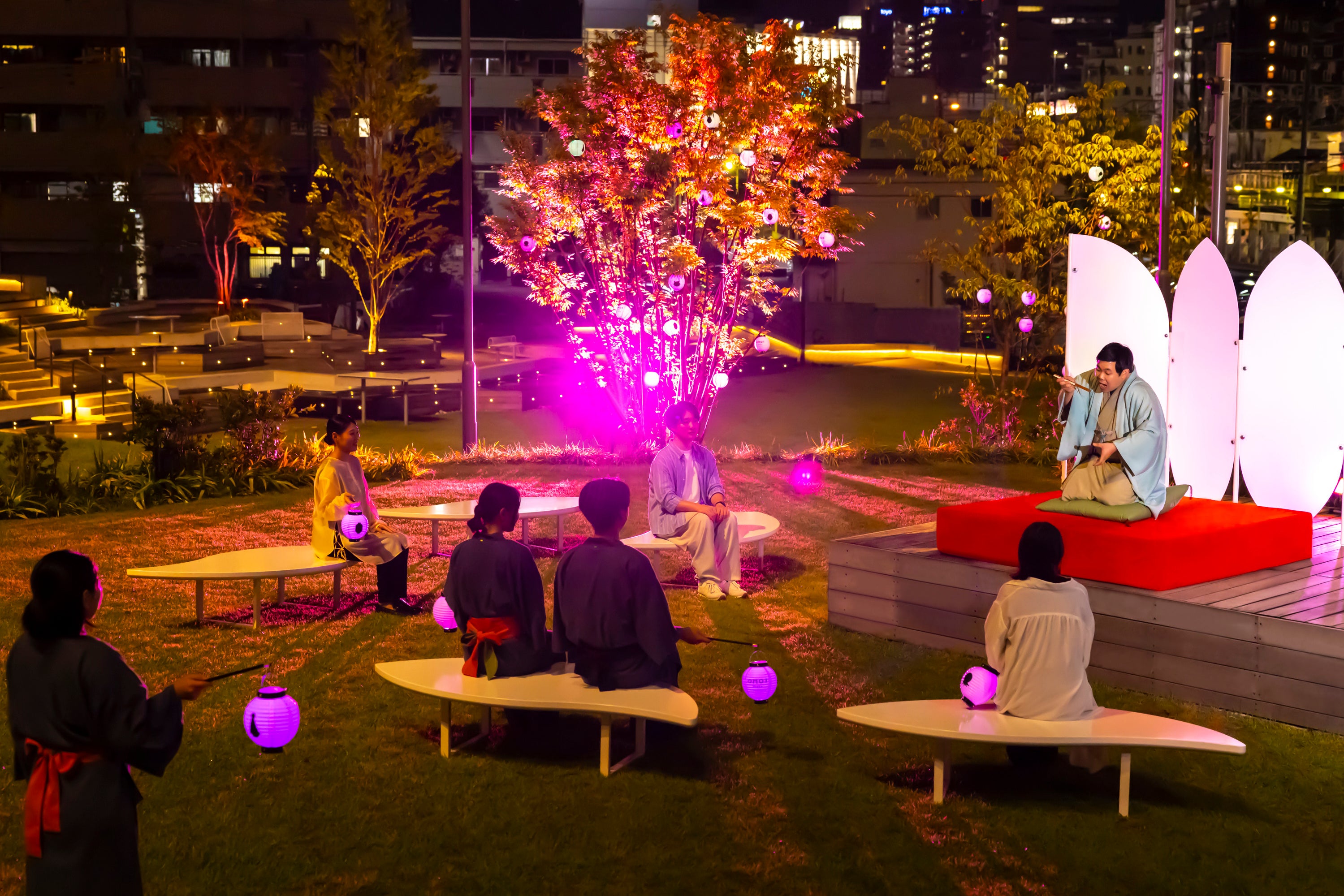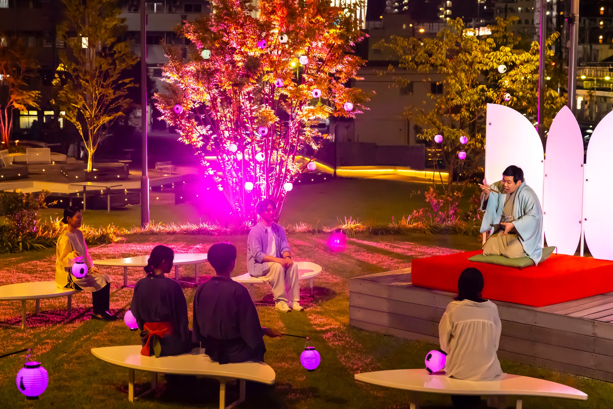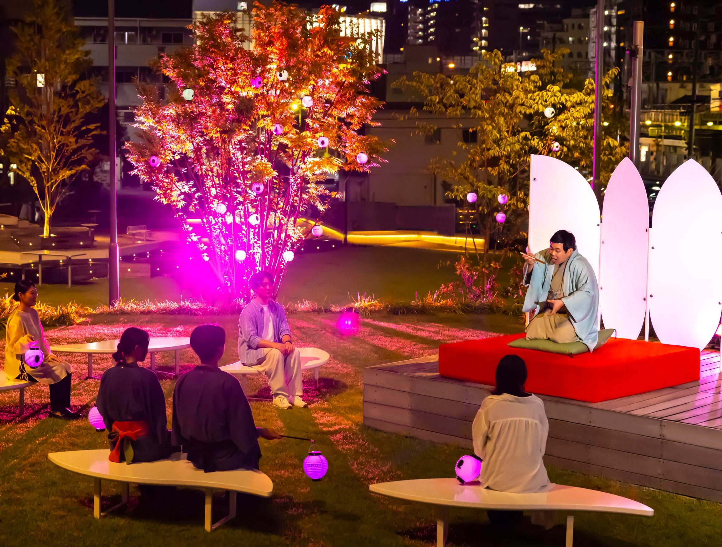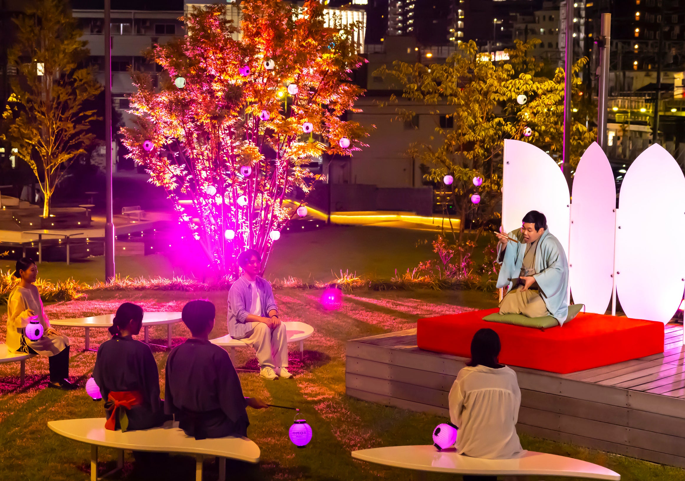 本イベントには毎晩、株式会社 米朝事務所より大阪の落語家が出演し、春にまつわる上方落語を披露します。ガーデンエリアみやぐりんには、落語ステージが設置され、桜色に彩られた幻想的な空間で、迫力満点の落語を楽しむことができます。上方落語の世界に浸り、ひと笑いしながら普段のお花見では体験できない贅沢な時間を過ごせます。