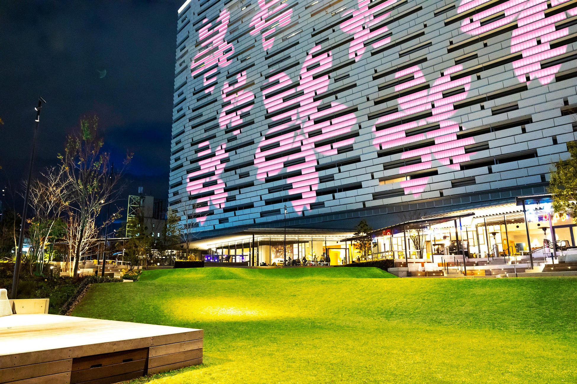 当イベントを盛り上げるのは、建物の壁面を覆う外装膜に舞う夜桜です。外装膜には約13,000個のLEDランプが備わっており、このLEDランプの間接光を線状照射で当て、映像として見せる演出は日本初の試みです。光の演出で桜色に彩られる幻想的な空間は、ひと味違ったお花見気分を味わえます。また、一日に4回「PIKAPIKA 夜桜ショー」と題した特別映像を放映。映像には、大阪のシンボルであるビリケンさんが登場し、一緒に夜桜を楽しめます。