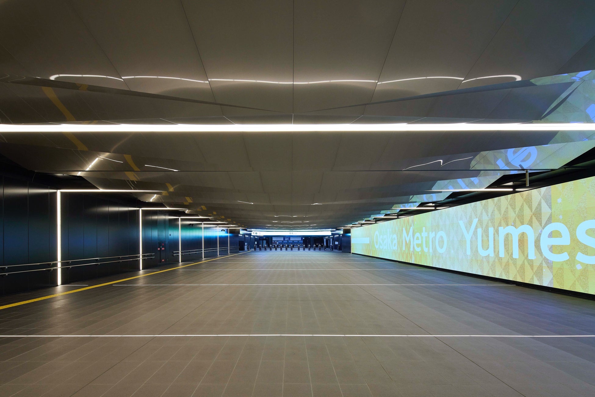 2025年大阪・関西万博会場へ直接乗り入れる唯一の鉄道アクセスルートであり、「移世界劇場 動く(いきる)=移動の魅力を発信する駅」として誕生した夢洲駅。人々が多彩なシーンに導かれ、多様性や命の鼓動、日本文化を展開する空間、いきいきと「動く(いきる)」駅がデザインされています。