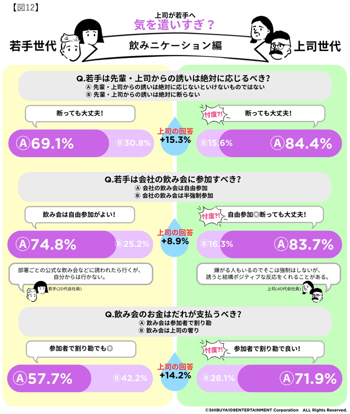 ※20代の会社員を「若手世代」、40代以上の会社員を「上司世代」と表現しています。