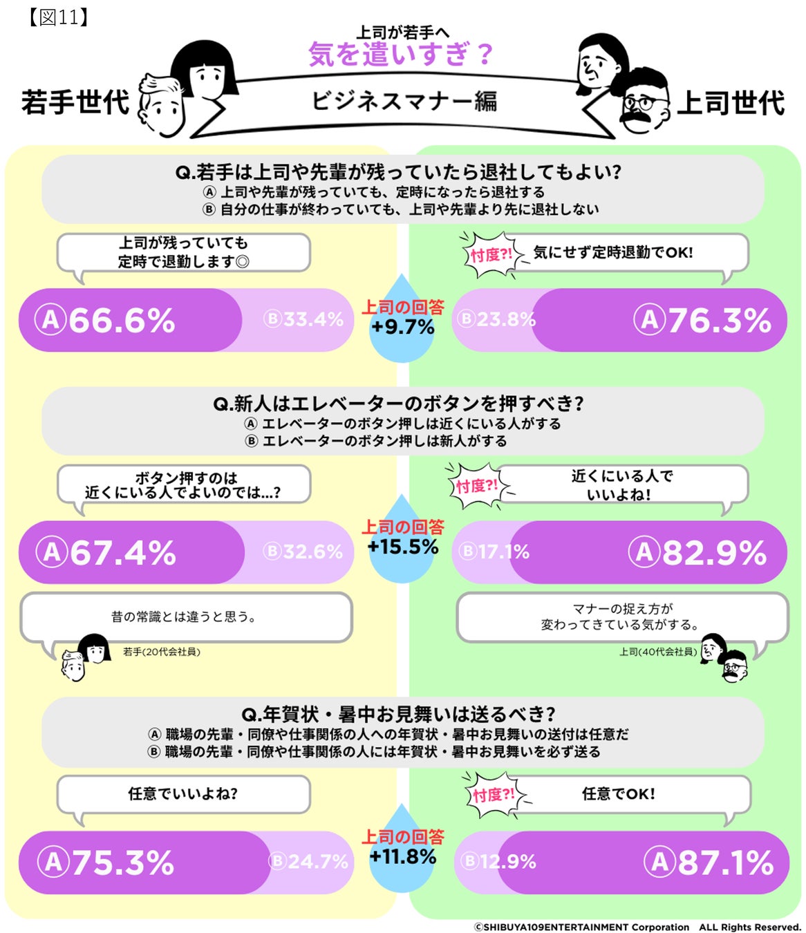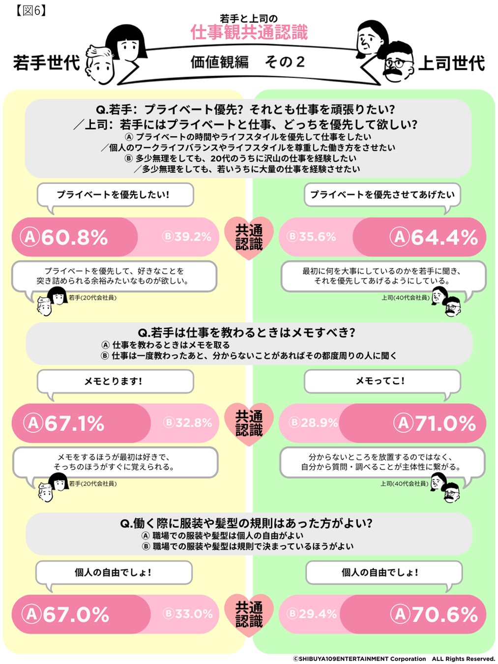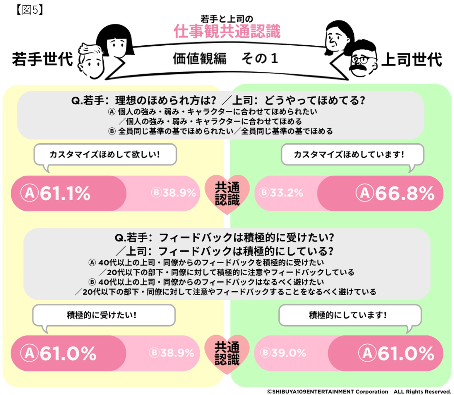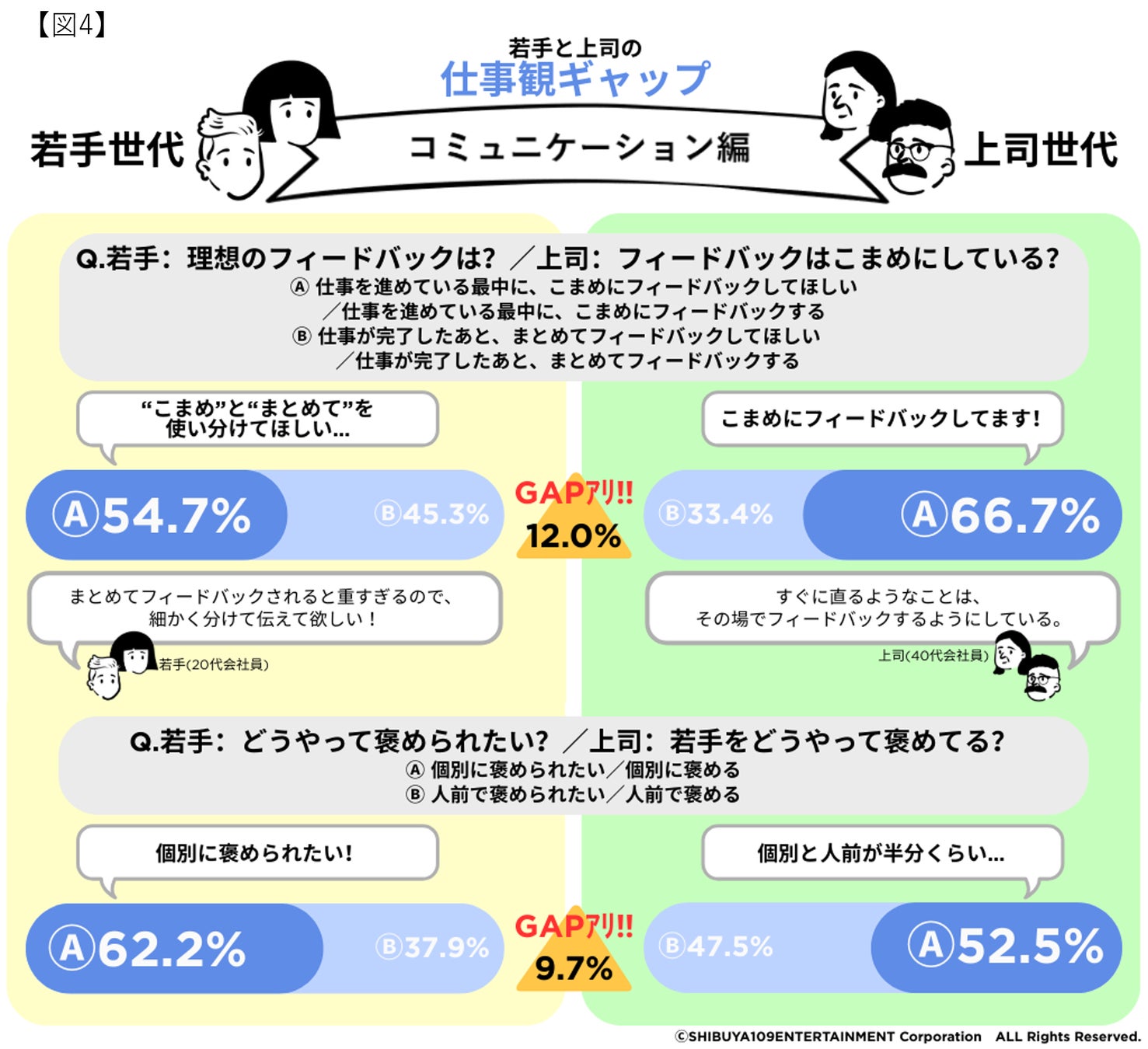 株式会社SHIBUYA109エンタテイメント(本社:東京都渋谷区、代表取締役社長:石川 あゆみ)が運営する若者マーケティング機関『SHIBUYA109 lab.(読み:シブヤイチマルキュウラボ)』と「金沢大学 金間研究室(石川県金沢市)」は、20代の会社員457名と40代以上の会社員480名を対象に「Z世代と上司世代の仕事観ギャップ」をテーマに、共同調査を実施いたしました。