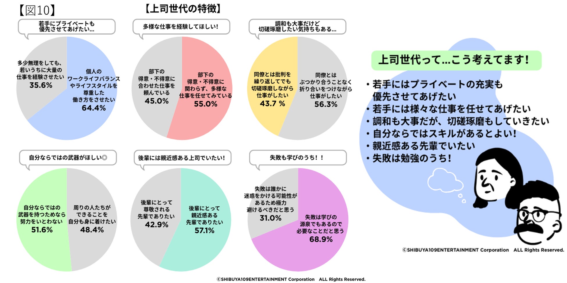 また、「個人のワークライフバランスやライフスタイルを尊重した働き方をさせたい」と回答する上司世代は64.4%となり、半数以上を超えています。(※図10参照)
