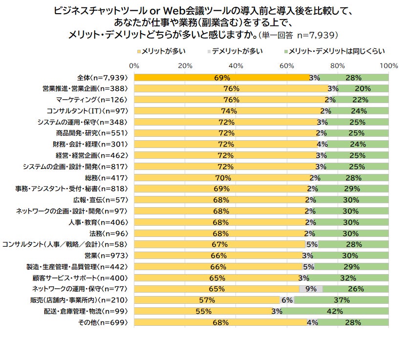 - ビジネスチャットツール・Web会議ツールの導入 「メリットが多い」 69%