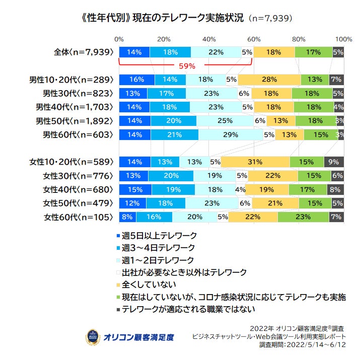 - テレワーク実施状況は「週1~2回」が最多 10・20代は出社の傾向