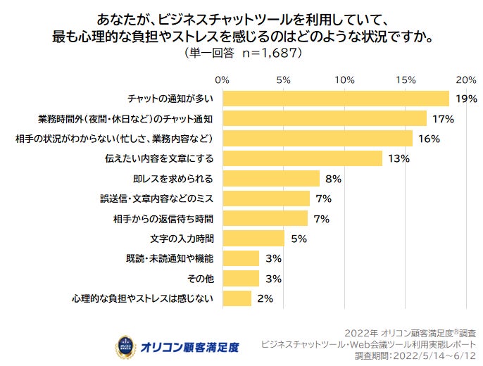 - ストレスは「チャットの通知が多い」が最多 「時間外の通知」も負担に