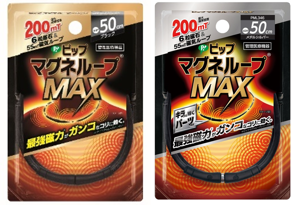 ◆ピップマグネループMAX:国内最大磁力の200ミリテスラで、ガンコなコリを改善