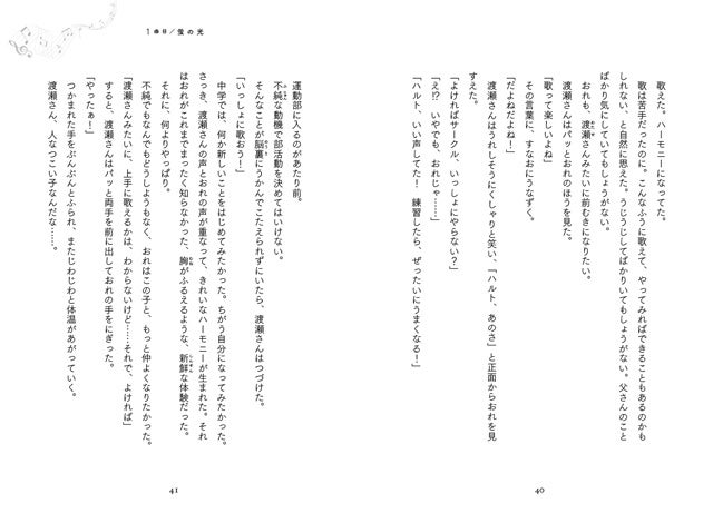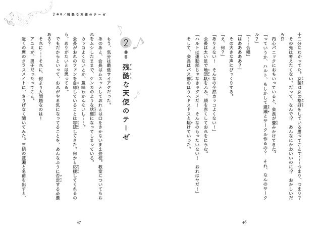中学生活で新しいことをはじめようとするハルトの気持ちを追っていくと、自分の「好き」とはなにか、自分のやりたいことは何か、それにどう向き合ったらいいのか、思わず考えさせられます。「周りの期待にこたえるのが辛い」「できないことばっかり」「しゃべるのが苦手」「モテるのも大変…?」など、ハルト以外の登場人物もそれぞれ悩みを抱えています。お互い助け合い、合唱を通してひとつの目標にむかっていく姿には胸が熱くなること間違いなし!