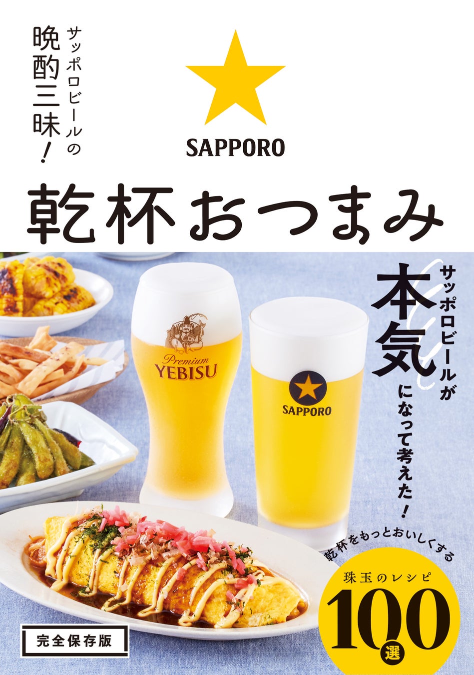 サッポロビールの公式レシピサイトから乾杯をもっとおいしくするための絶品おつまみを厳選し1冊のレシピ本として発売します。今回は700ほどあるレシピの中から厳選した90品を紹介。さらには「すぐできおつまみ」と称して、5分以内で完成する簡単レシピを新たに10品書き下ろし、計100品のレシピを掲載しています。