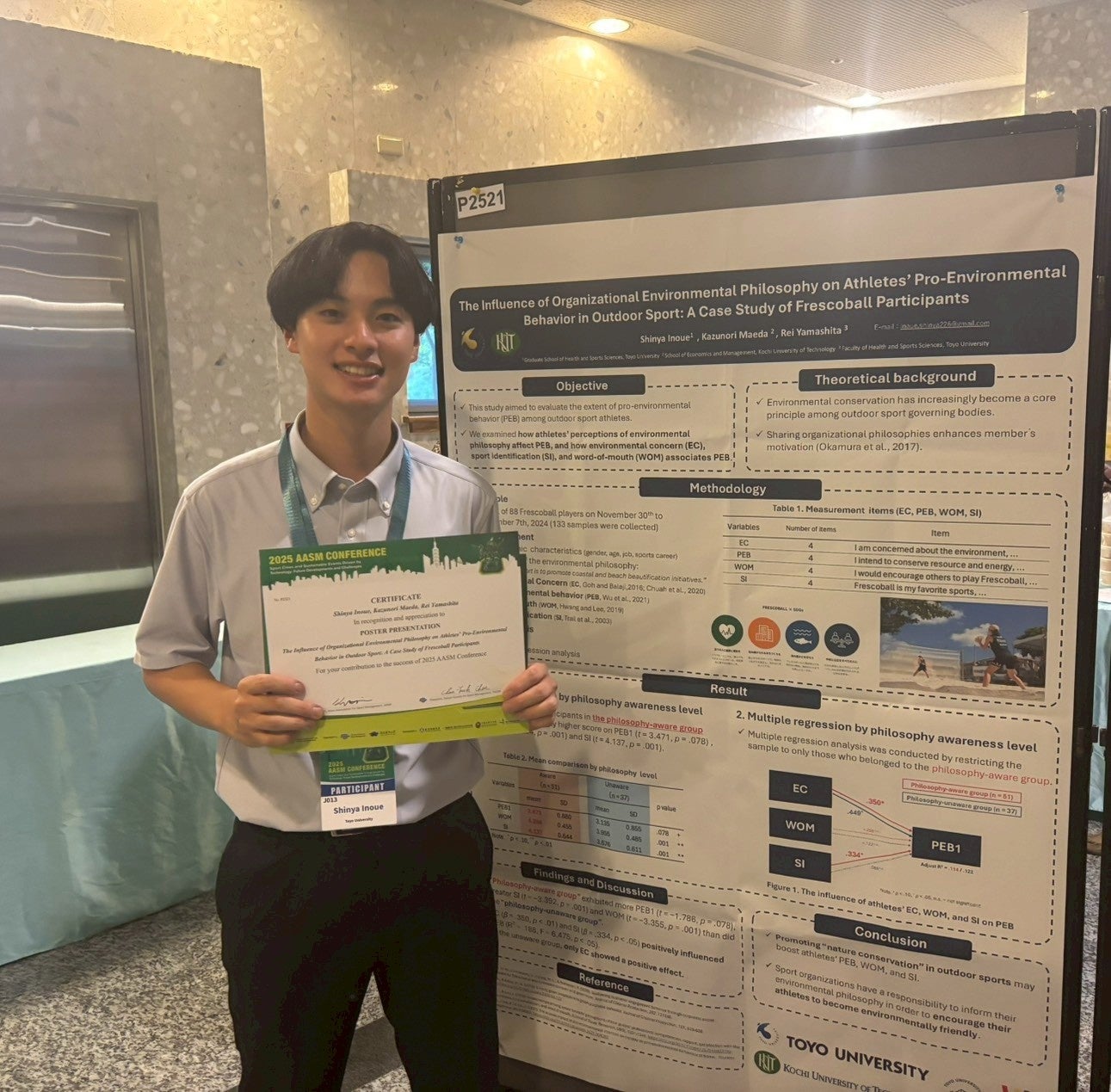 2025年8月に台湾・台北で開かれた同学会にて発表。テーマは「スポーツ団体の“環境への考え方”は、選手の行動を変えるのか?―フレスコボールを通じて見えた環境配慮行動の広がり―」。