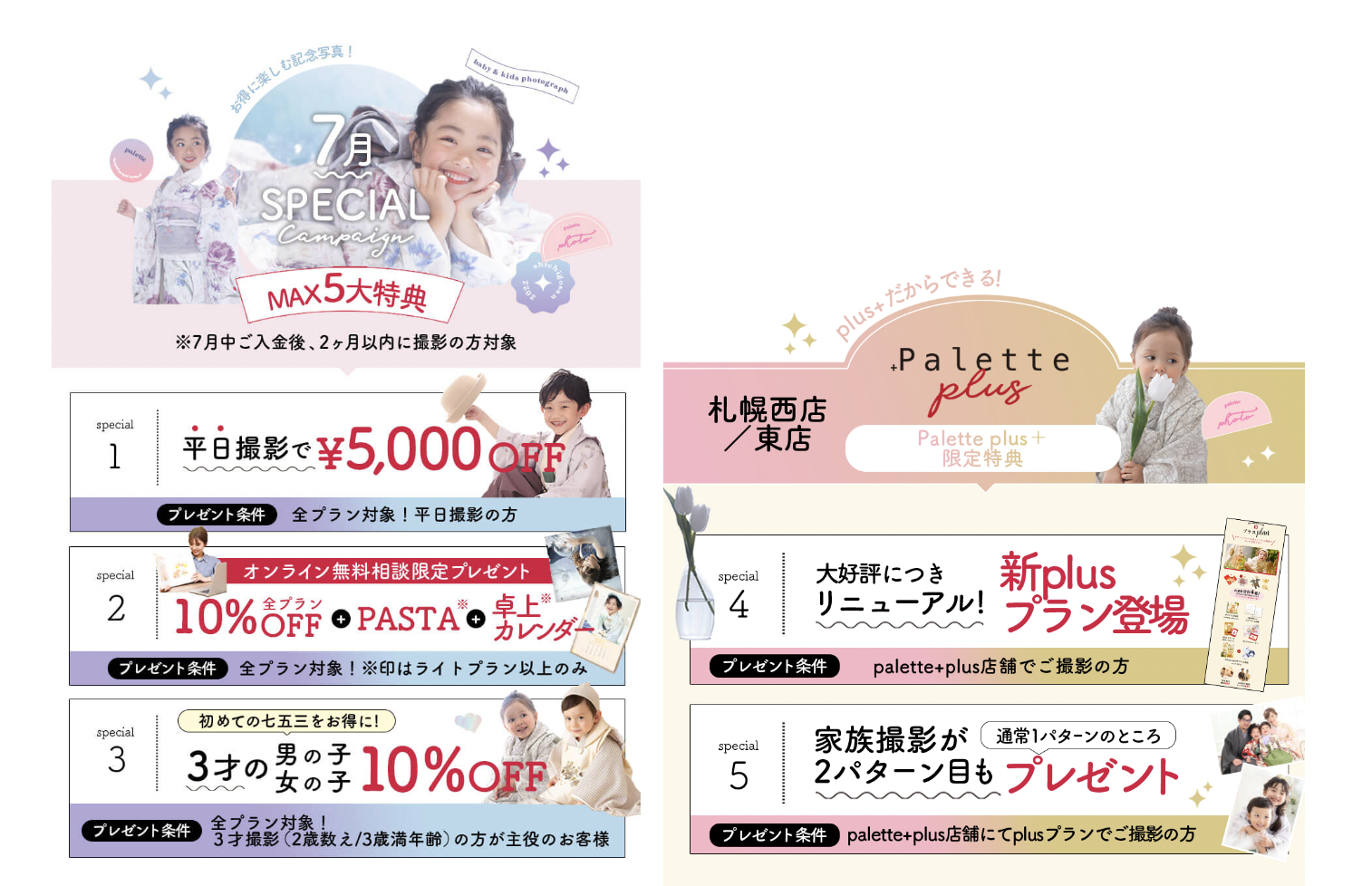 北海道札幌市、旭川市、帯広市、函館市、北斗市で展開する「写真工房ぱれっと」では、七五三撮影キャンペーンを実施中!7月は「福袋プラン」が復活!