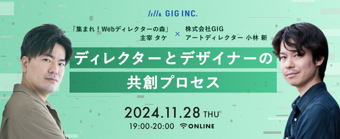 そこで今回は、Webディレクターコミュニティ「集まれ!Webディレクターの森」の主宰であるタケさんをご招待。クロスデザイナーでデザイン統括を務める小林と共に、デザイナーとディレクターの共創プロセスについてお話しします。