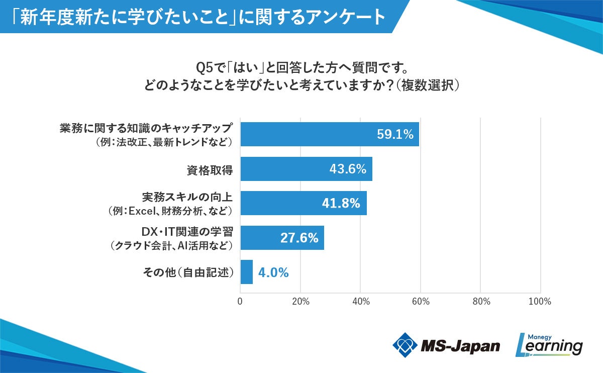 この度、MS-Japanが運営する管理部門・士業の学びを支援する「Manegy Learning(マネジーラーニング)」は、【「新年度新たに学びたいこと」に関するアンケート】を実施いたしました。