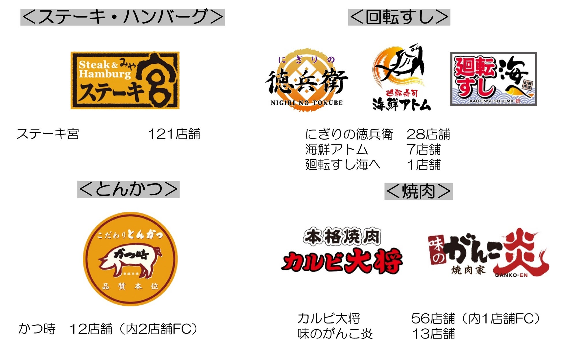 対象店舗:ステーキ宮、カルビ大将、がんこ炎、かつ時、にぎりの徳兵衛、海鮮アトム、海へ