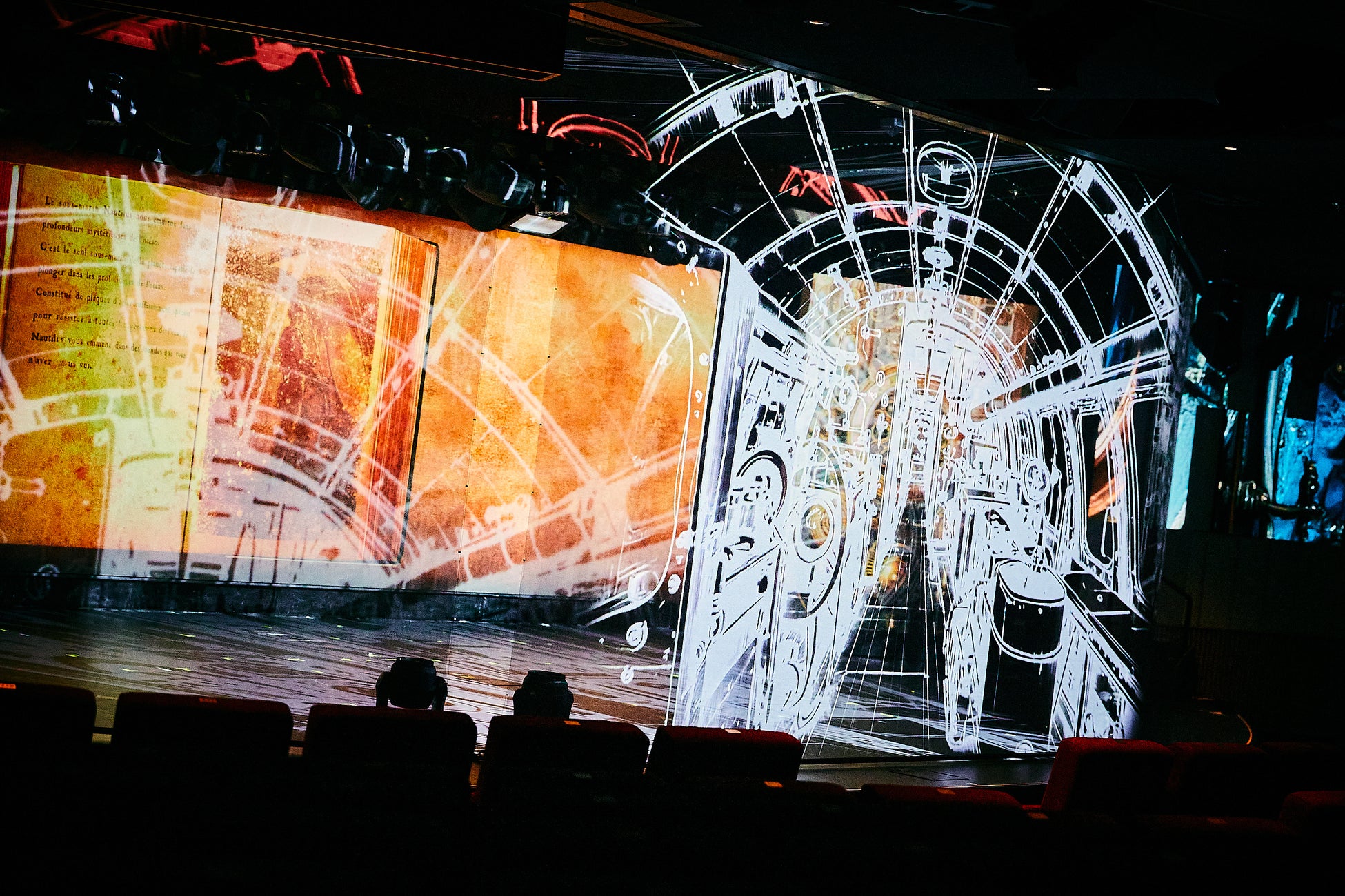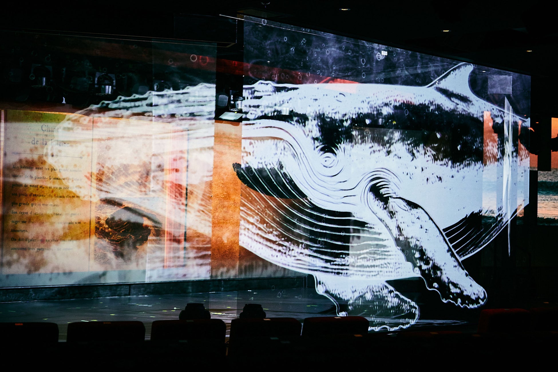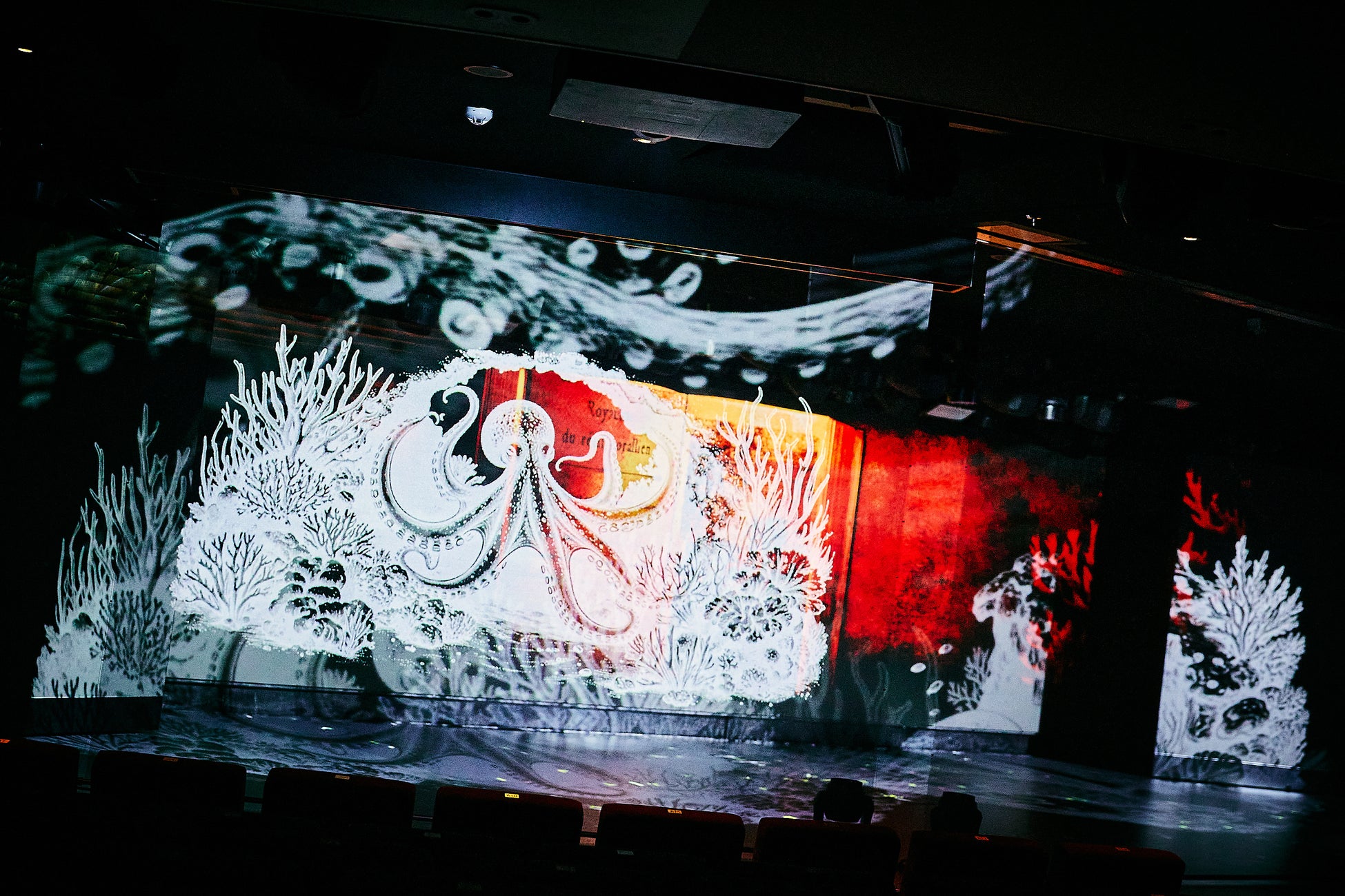 ホログラフィックスクリーンやLEDスクリーンの立体的なデジタルアート映像で物語を紡ぐ新感覚のイマーシブ(没入型)アーツ。「海底二万里」をオマージュし謎に満ちた海の世界を空想的に描くオリジナル映像作品。