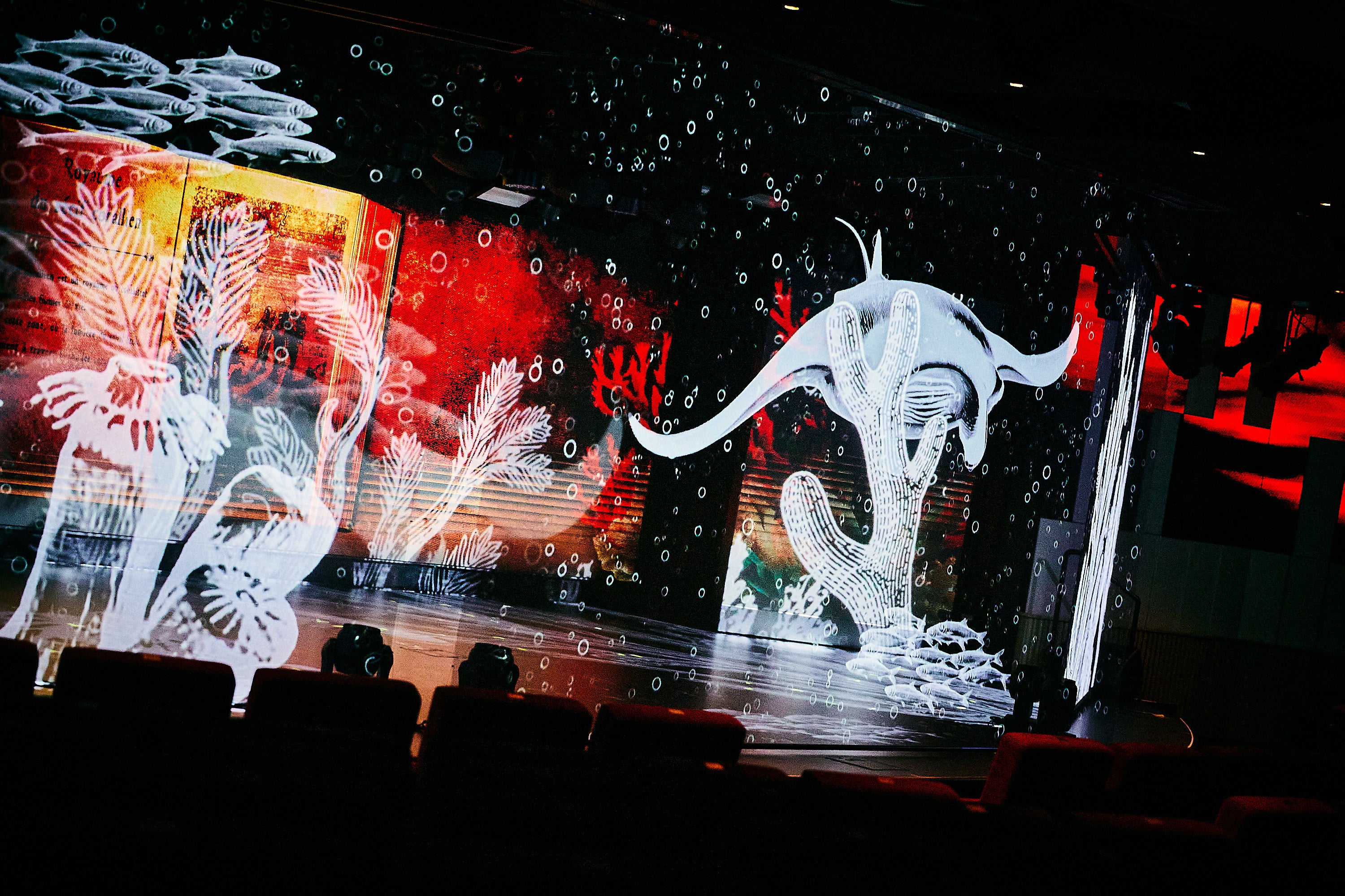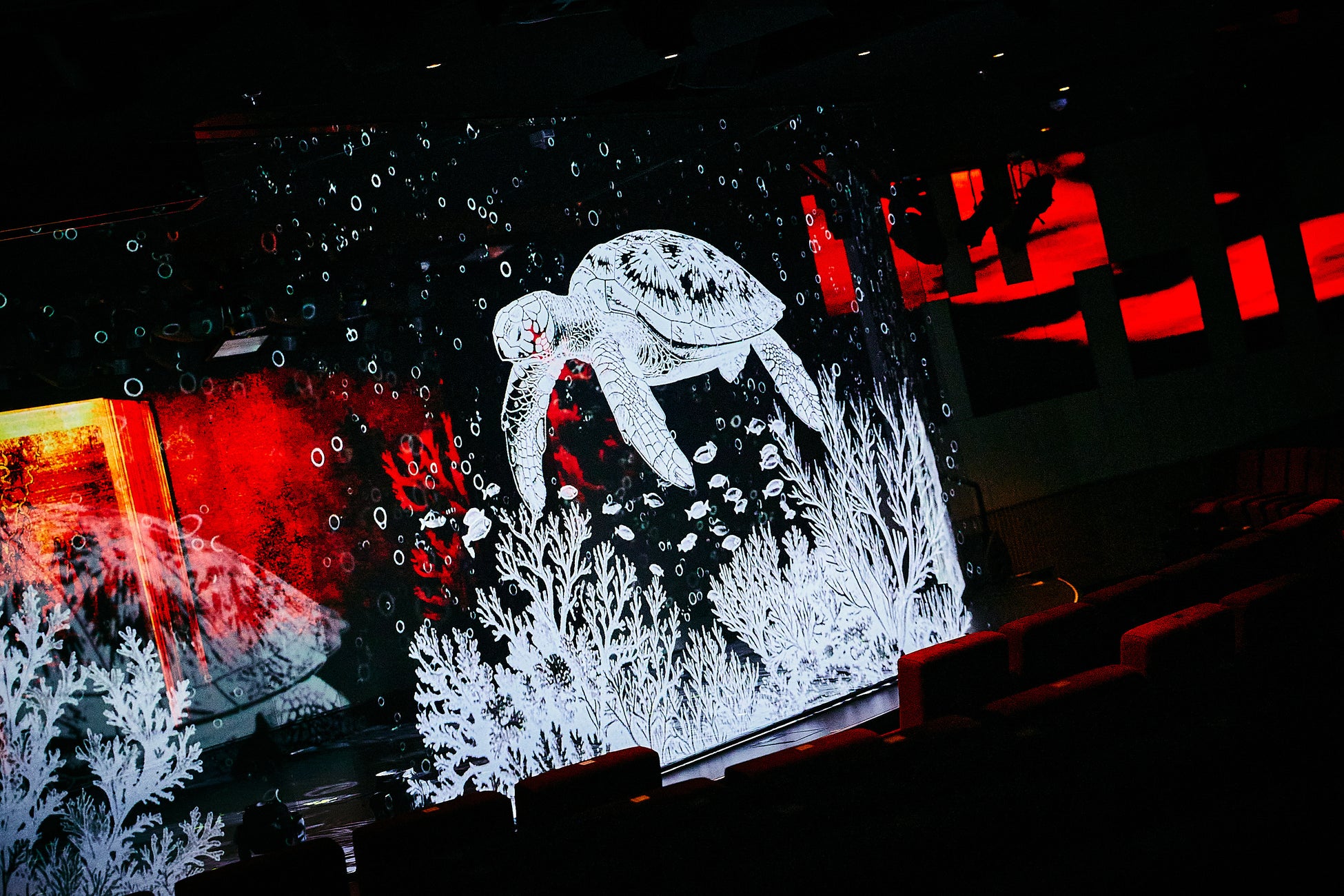 一旗プロデュース「飛鳥Ⅲ オリジナルイマーシブアーツ」のプログラム「Deep Ocean」の公式記録写真を公開。クルーズ船「飛鳥Ⅲ」の「リュミエールシアター」でロングラン上映中。
