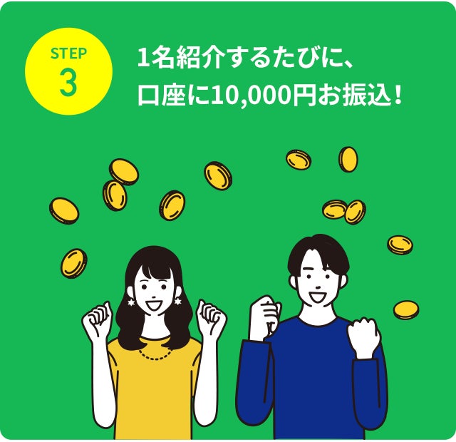 STEP3 1名紹介ごとに現金10,000円をナッシュからお振り込みいたします