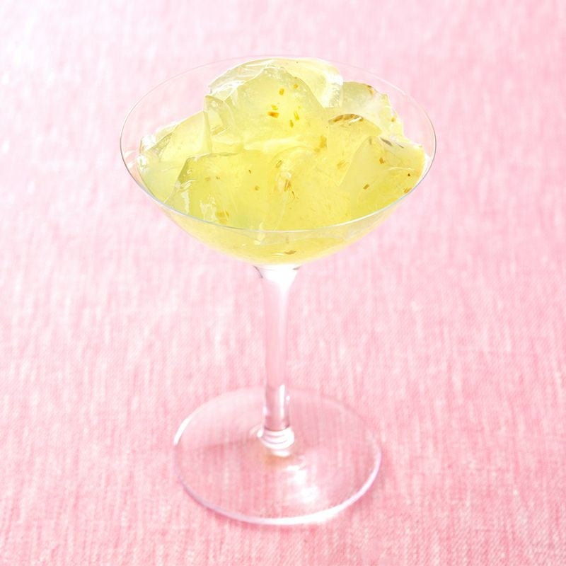 山梨県産シャインマスカット果汁を使用したシンプルな味わいの人気のゼリーです。ガラスの食器に盛り付ければ、さらに涼しげなデザートになります。暑い日のリラックスタイムや食後にどうぞ。