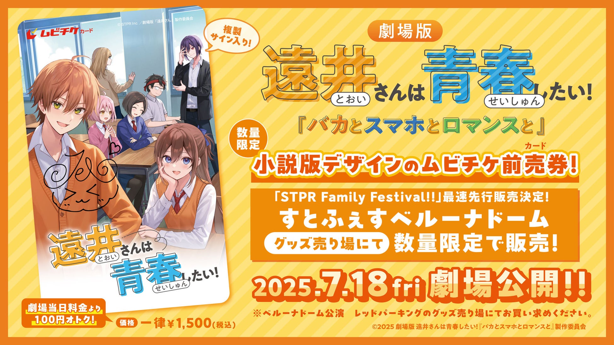 株式会社STPR(本社:東京都渋谷区、代表:柏原真人、以下「STPR」)は、弊社所属クリエイター・ジェル(すとぷり)が原作を手がける大人気ショートアニメ動画シリーズ『遠井さん』の劇場アニメ「遠井さんは青春したい!『バカとスマホとロマンスと』」が、2025年7月18日(金)より全国の映画館にて公開されることが決定したことをお知らせいたします。