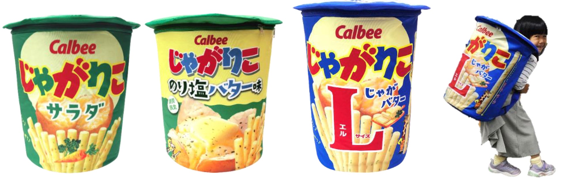 - 「のり塩バター味」や「じゃがバターLサイズ」のパッケージを再現したリュックやショルダーポーチが登場!
