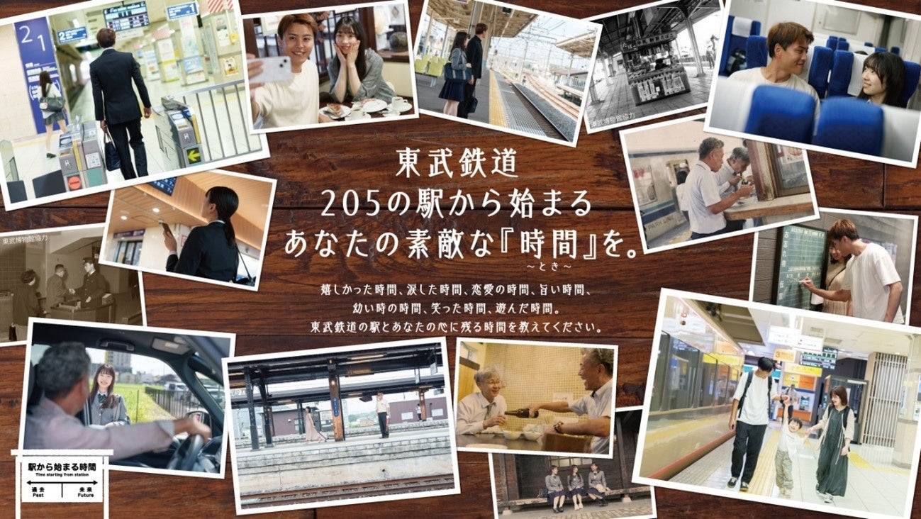 東武鉄道205の駅から始まる、あなたの素敵な『時間』を。嬉しかった時間、涙した時間、恋の時間、旨い時間、幼かった時間、笑った時間、遊んだ時間、誰にも教えたくない時間、東武鉄道の駅とあなたの心に残る時間を教えてください。