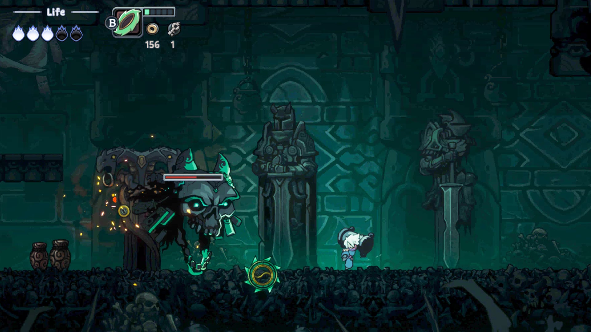 町のはずれにはスペリア平原が広がっており、それぞれ特色を持つダンジョンにつながっています。入り組んだ迷宮のようなダンジョンには敵モンスターだけでなく、メトロイドヴァニアならではの仕掛けが施されており、必要なスキルやアイテムを修得しないと通れない場所が数多く存在します。試遊版ではダンジョンの一部だけでなく、ストーリーに沿って「ロティングブルグ」のダンジョン「地下墓地」を探索することも可能です。ぜひブースに立ち寄って自分のプレイスタイルに合わせて試遊版を遊んでみてください!